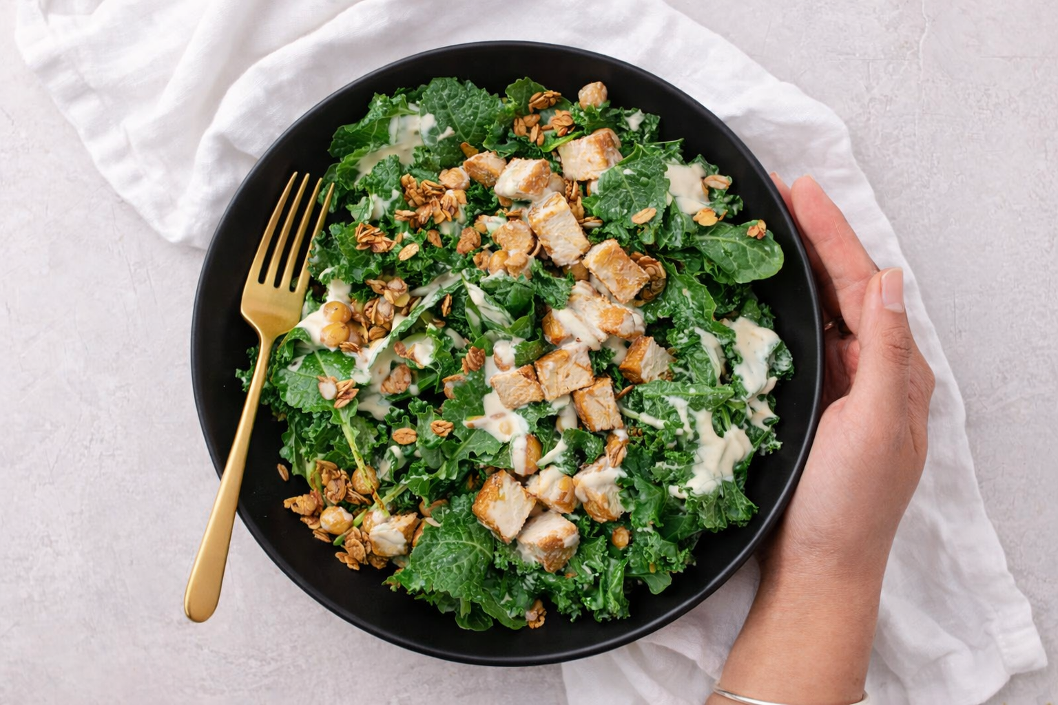 Kale Caesar Salad w/ Vegan Ranch Dressing with Roasted Chicken Breast